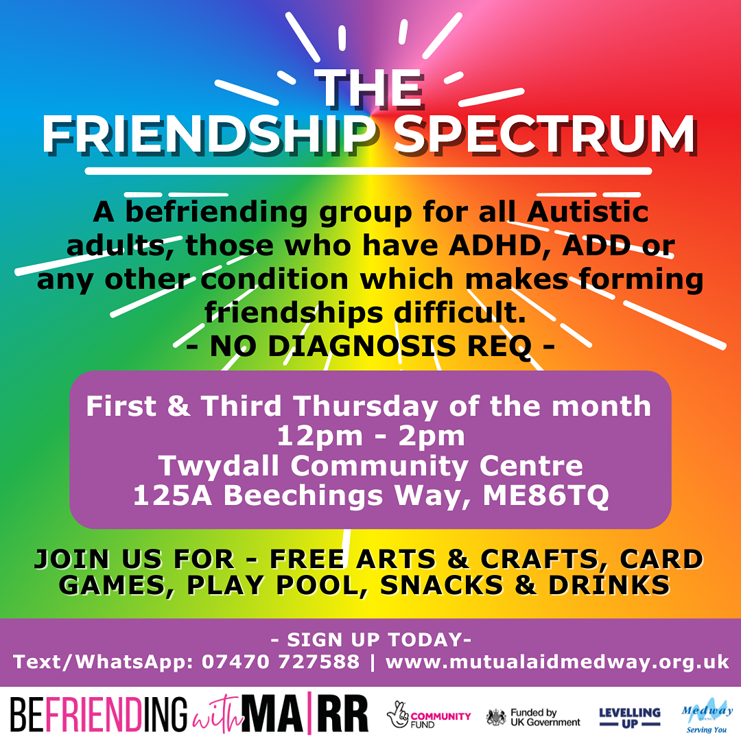 The Frienship Spectrum in a specialised befriending group for Autistic adults, those with ADD, ADHD or any other lifelong condition which can make forming friendships more difficult.